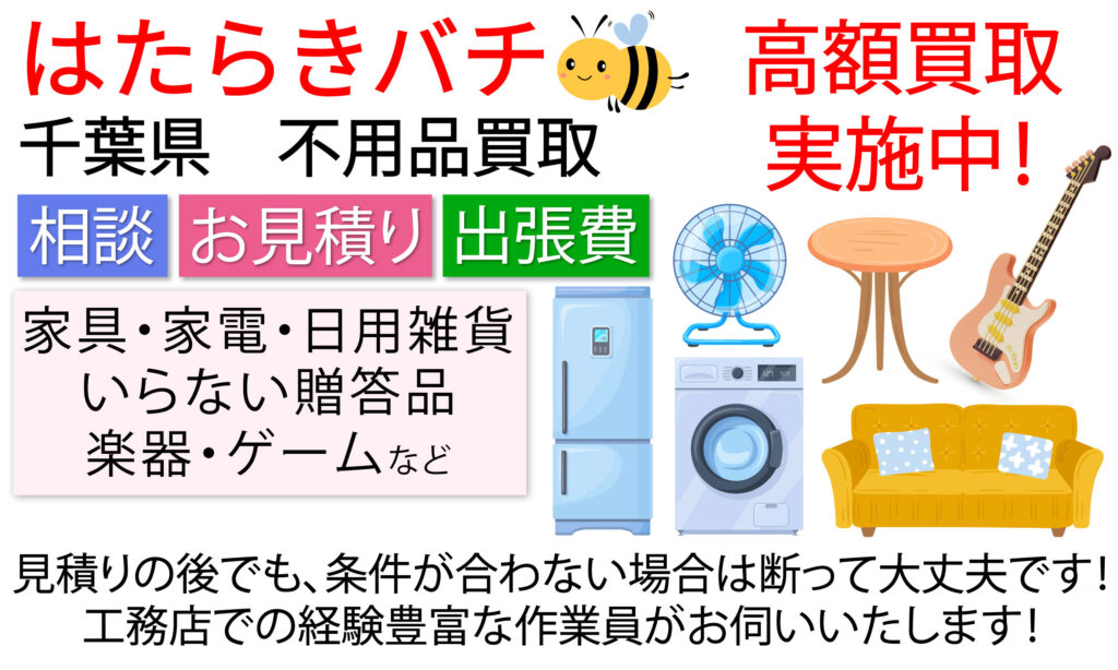 「他の買取業者で断られた…」というお品物も、ぜひ一度ご相談ください。千葉県で不用品を売るなら、高価買取が期待できるはたらきバチにお任せください。